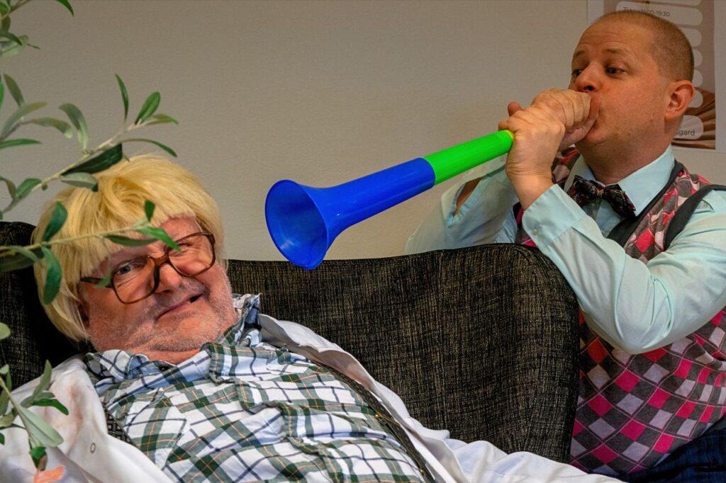 Två charmerande systrar, en flaska hemlagat fläderbärsvin och en brorson som råkar snubbla över mer än han borde. Det är som upplagt för en kväll med kvicka repliker, oväntade vändningar och gapskratt.